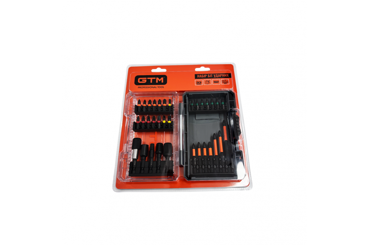 33 од Біти 25MM?PZ1, PZ2, PZ3, SQ1, SQ2, SQ3, T10, T15, T20*2, T25*2, T30, PH1, PH2*2, PH3, SL4, SL5, SL6 Біти 50MM:PH1, PH2, PH3 Біти 65MM:PH2 Біти 70MM:PH2 Біти 90MM:PH2 Бітотримач з автофіксацією:1/4*60MM Торцеві головки 8*48 Адаптер:1/4*50, 3/8*50, 1/2*50