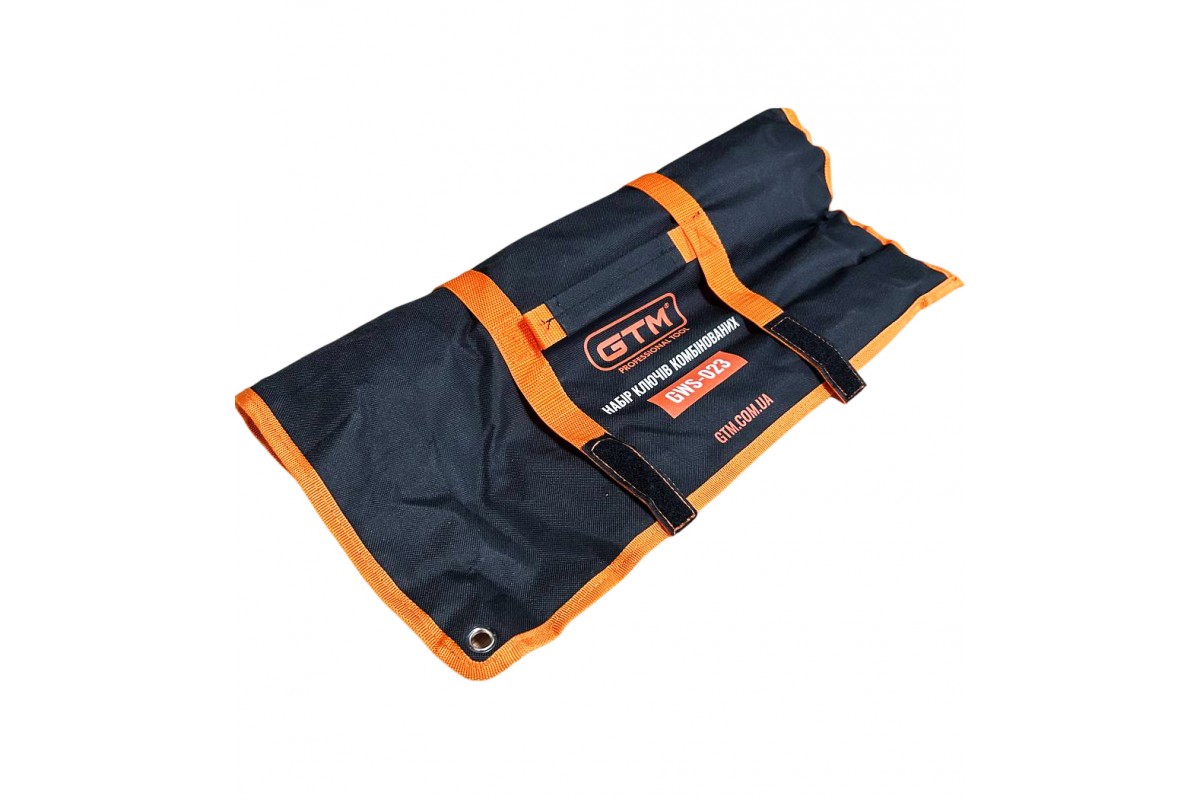 GTM GWS-023 - набір комбінованих гайкових ключів для закручування/викручування болтів, гайок та інших різьбових з'єднань. Даний набір поставляється в зручному тканинному чохлі, який дозволяє компактно зберігати їх як в багажнику автомобіля, так і на полиці в майстерні. Даний набір призначений для професійного застосування, але підійде також для роботи в побуті..