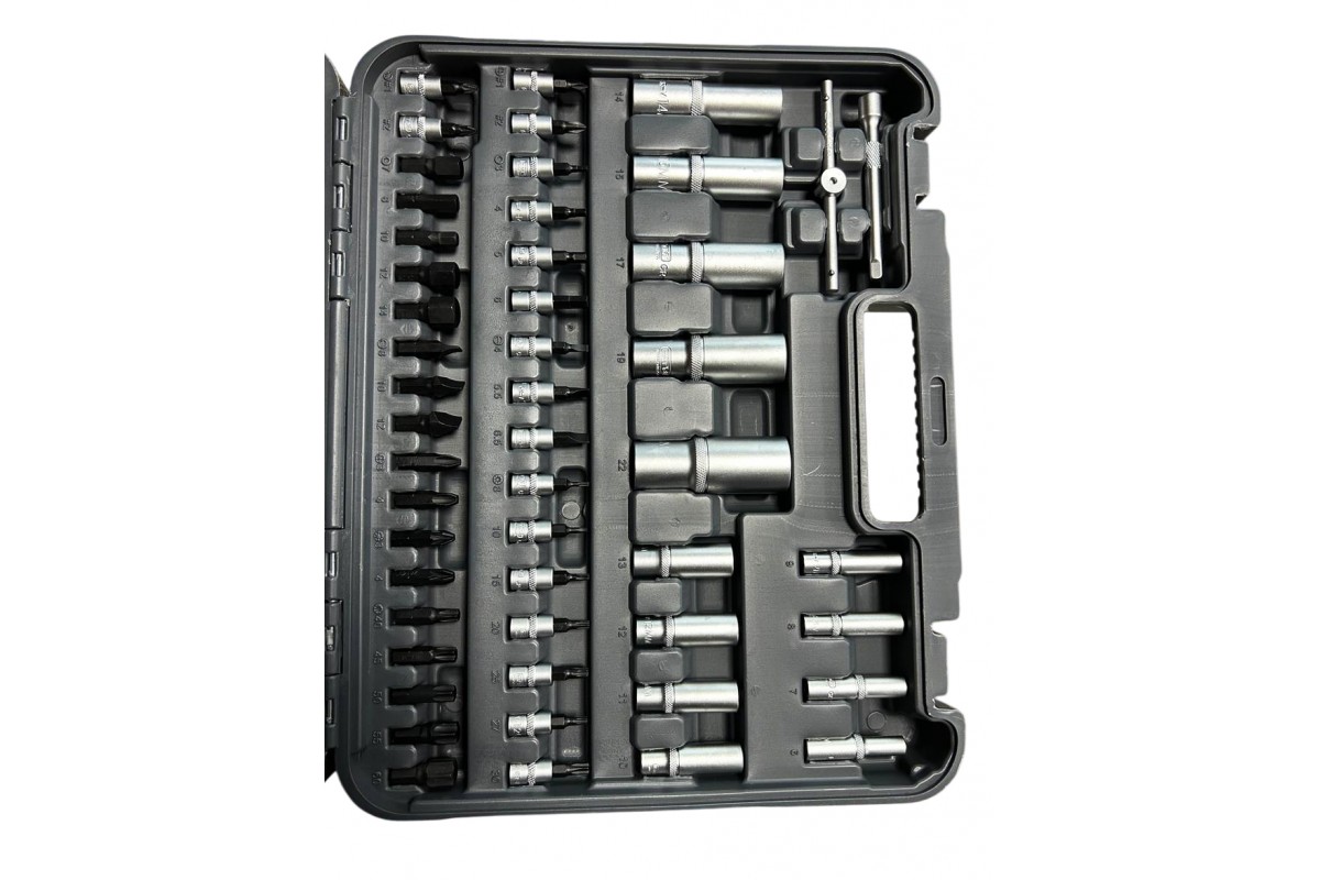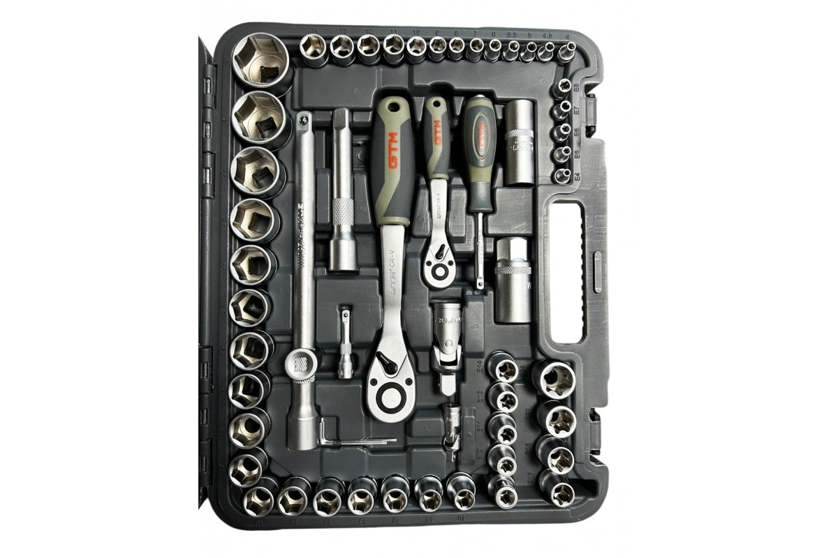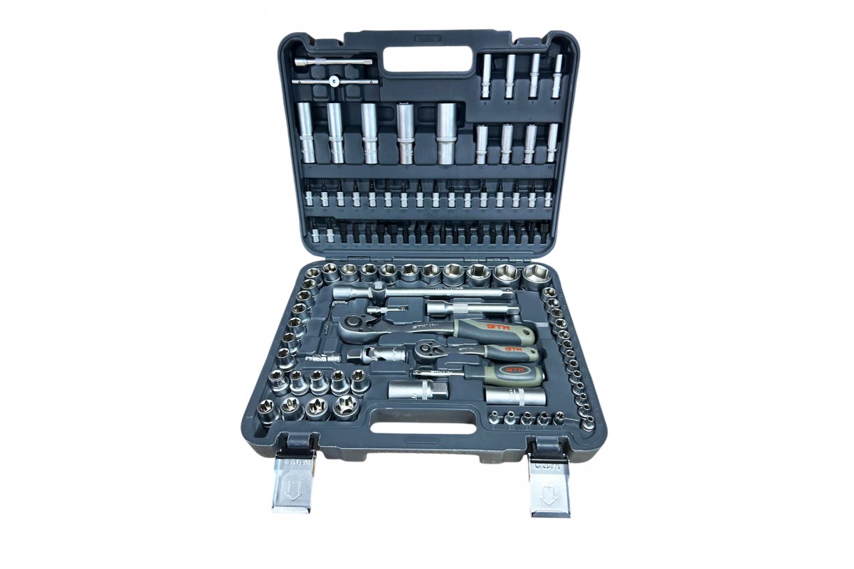 GTM GTS-108 - універсальний набір інструментів, призначений для використання вдома, в майстернях і СТО. Всі інструменти виготовлені з високоякісного сплаву хромо-ванадієвої сталі. Завдяки цьому набір не боїться корозії і впливу вологи. Включає в себеторцеві головки 1/4" та 1/2", тріскачки, воротки і перехідники. Поставляється у фірмовому ударостійкому захисному кейсі GTM.