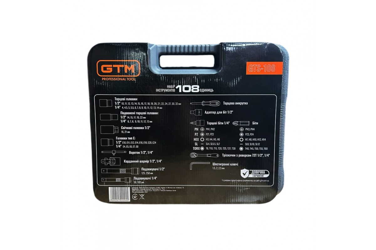 Комплектація Набір інструментів 108 од GTM GTS-108 1/4-1/2" (GTS-108)