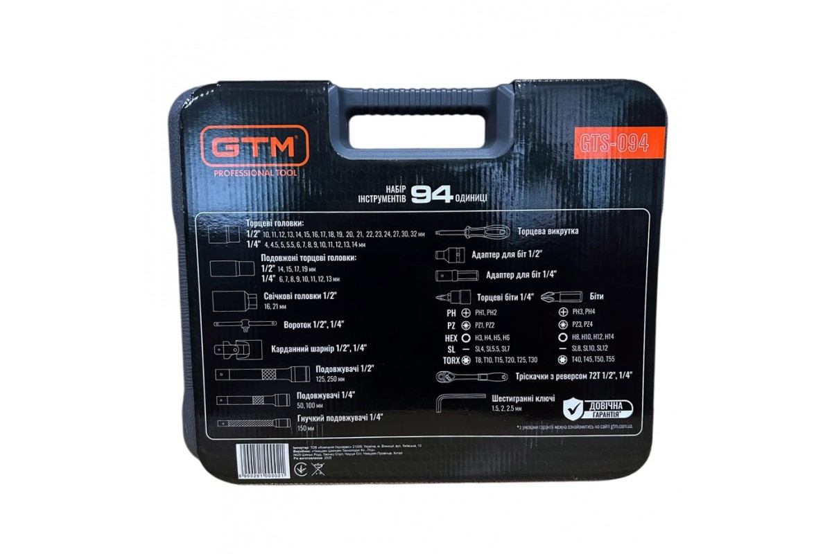 Комплектація Набір інструментів 94 од GTM GTS-094 1/4-1/2" (GTS-094)
