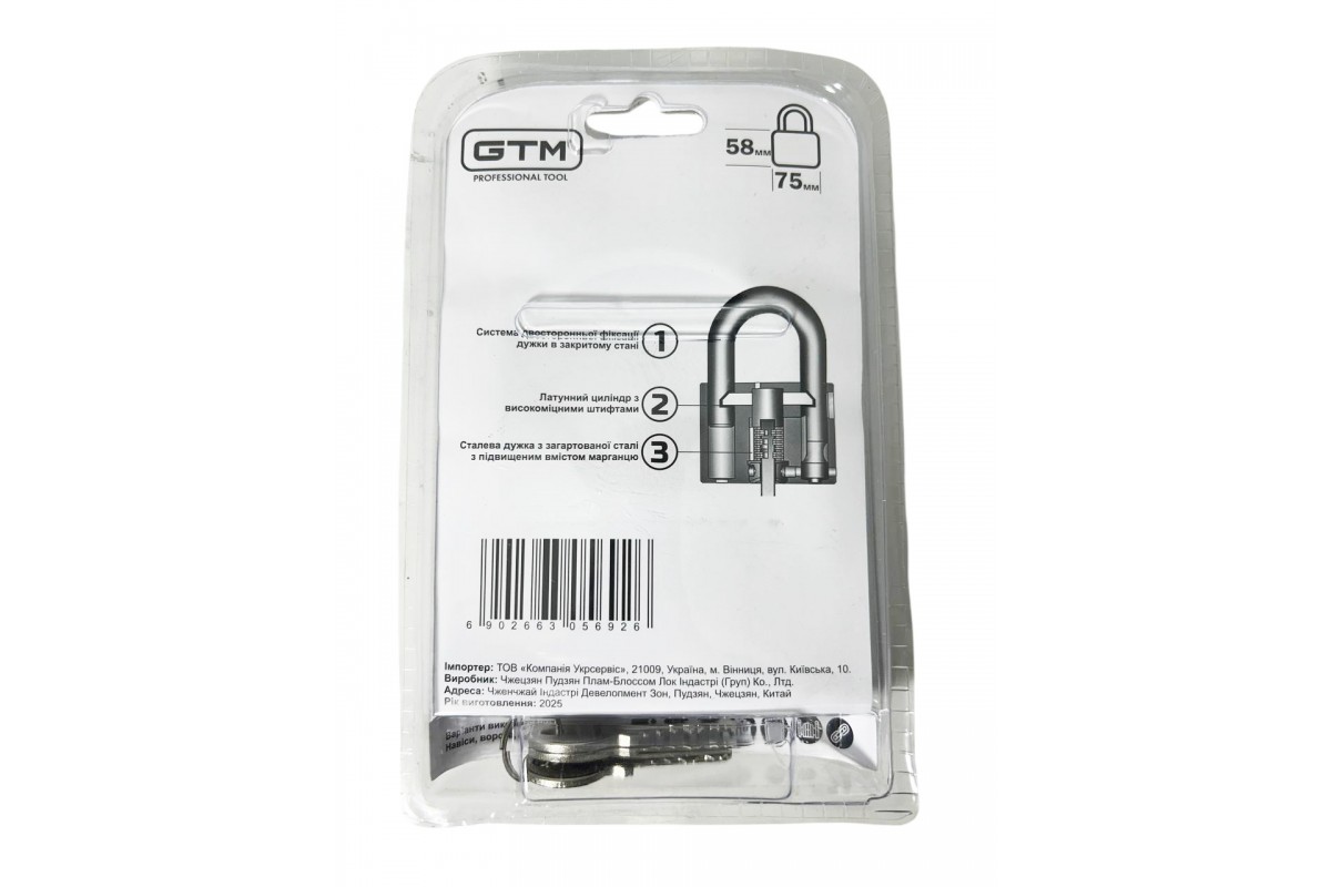Навісний замок GTM BXG0175 має стандартний розмір 75 мм.