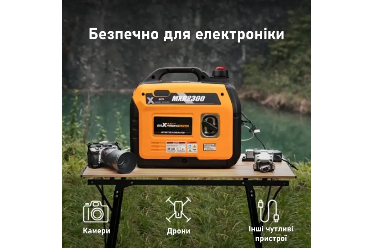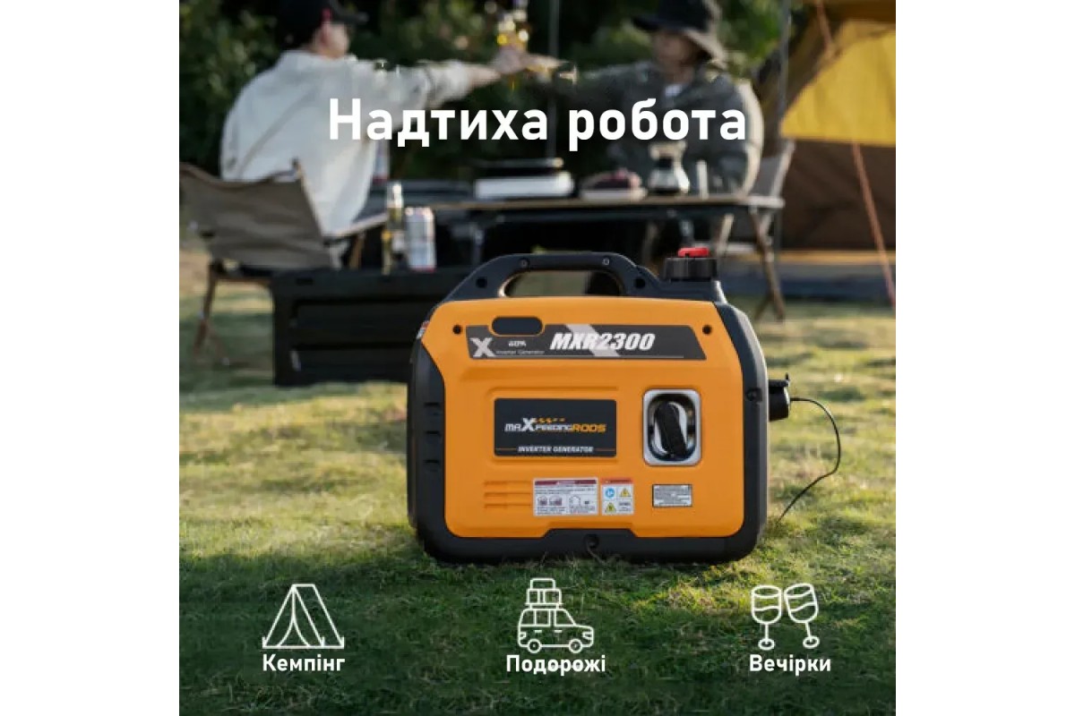 Інверторний генератор електроенергії MXR2300 забезпечує не тільки живлення великої побутової техніки та електроінструментів, але також служить резервним генератором у разі збою електроенергії. Ідеально підходить для кемпінгу на відкритому повітрі / кемпінгу, вечірок на відкритому повітрі, у саду, весілля на відкритому повітрі, подорожі на автофургонах, екстрене використання тощо. Вам більше ніколи не доведеться залишатися без електроенергії.