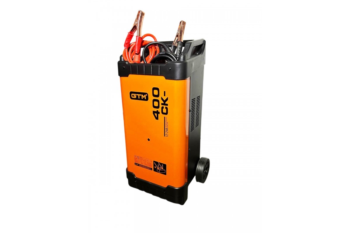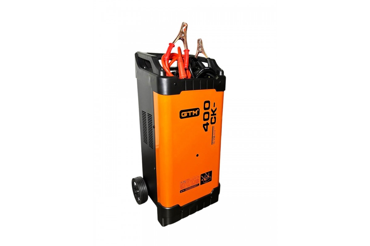 GTM CK-400 — це потужний, легкий та надійний інверторний пускозарядний пристрій професійного класу. Він розроблений для ефективної зарядки широкого спектру акумуляторів (ємністю до 1000 А·год) та швидкого запуску двигунів автомобільної, сільськогосподарської та іншої транспортної техніки, зокрема при повністю розрядженій АКБ.