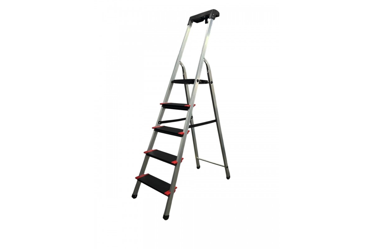 GTM KMH0105BP – компактная алюминиевая стремянка в форме односторонней стремянки, которая отлично подходит как для бытового, так и для профессионального использования. У данной модели стремянки 5 ступенек и максимальная высота до верхней ступени 109 см.